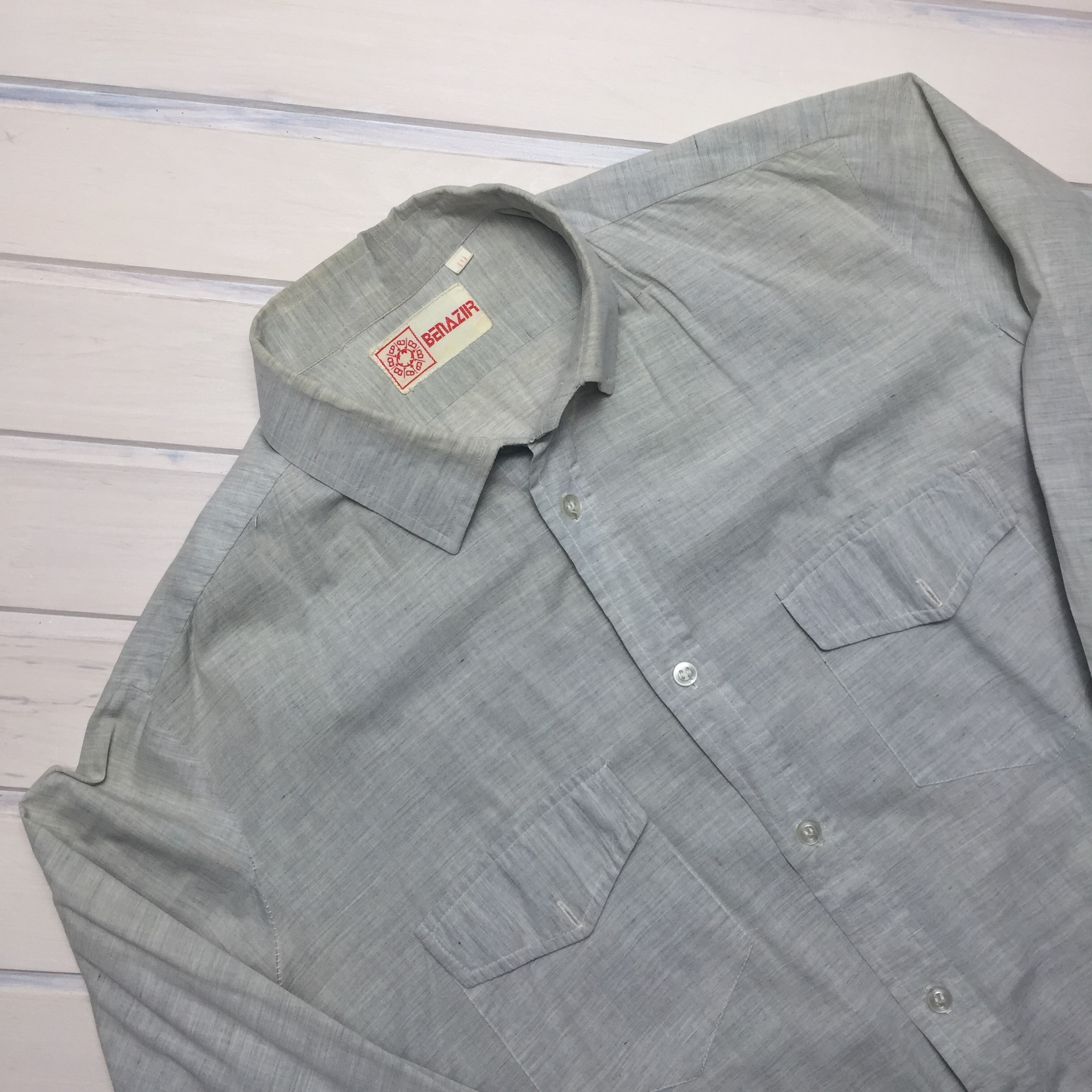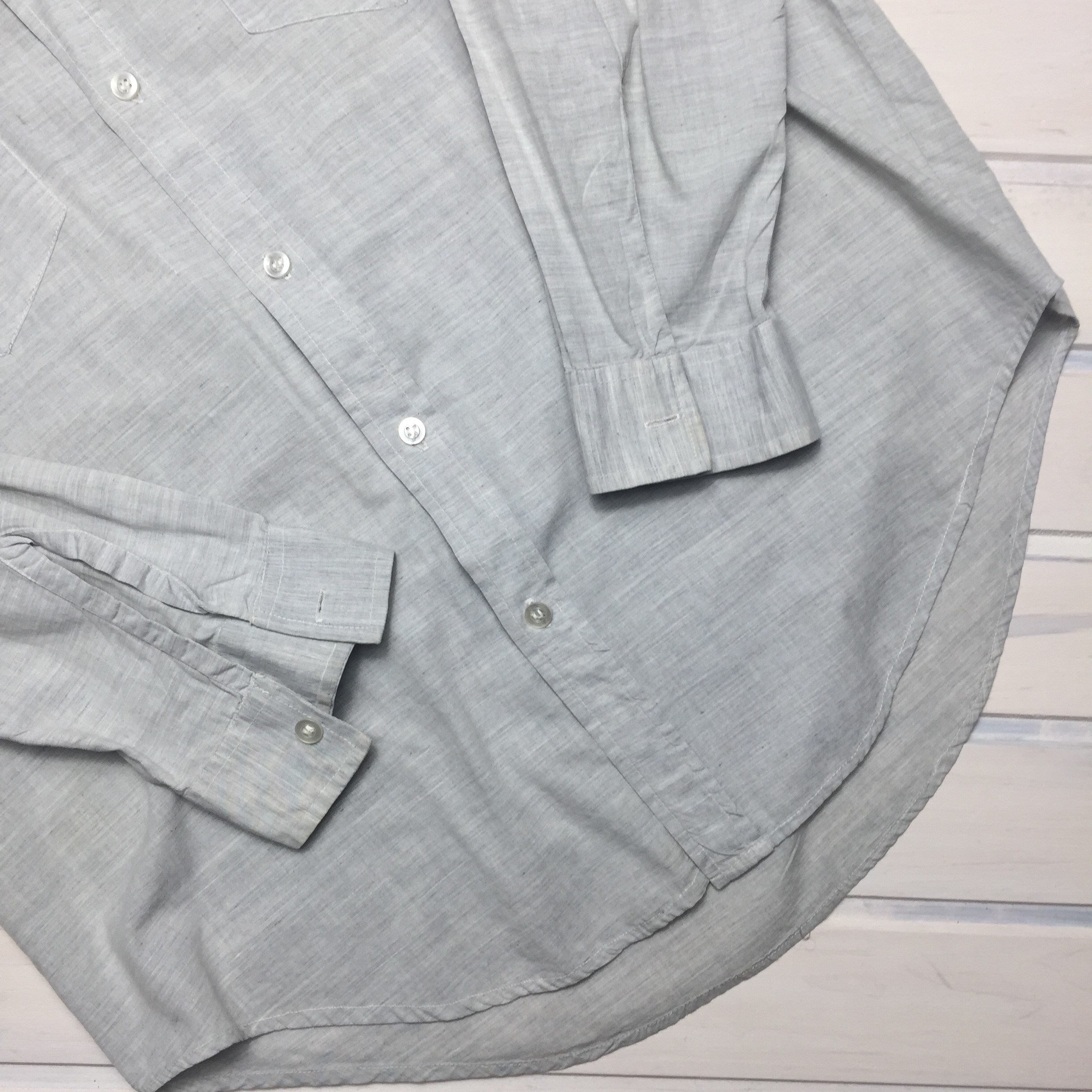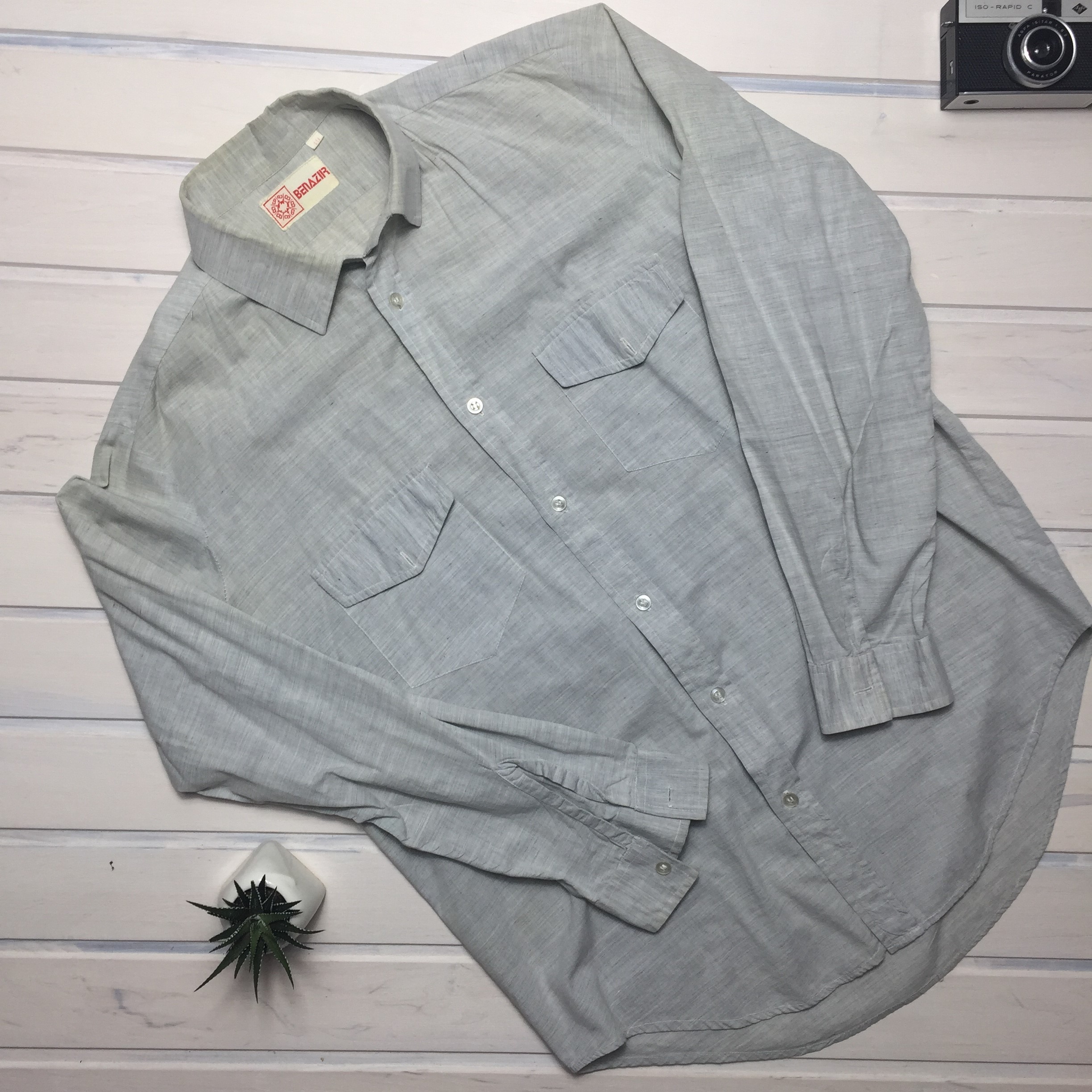 Мужская рубашка голубаяразмер L-XLширина плеча 42полуохват груди 54длина рукава 60длина изделия по спине 80Ширина изделия по низу 53цена 2.90арт. 57