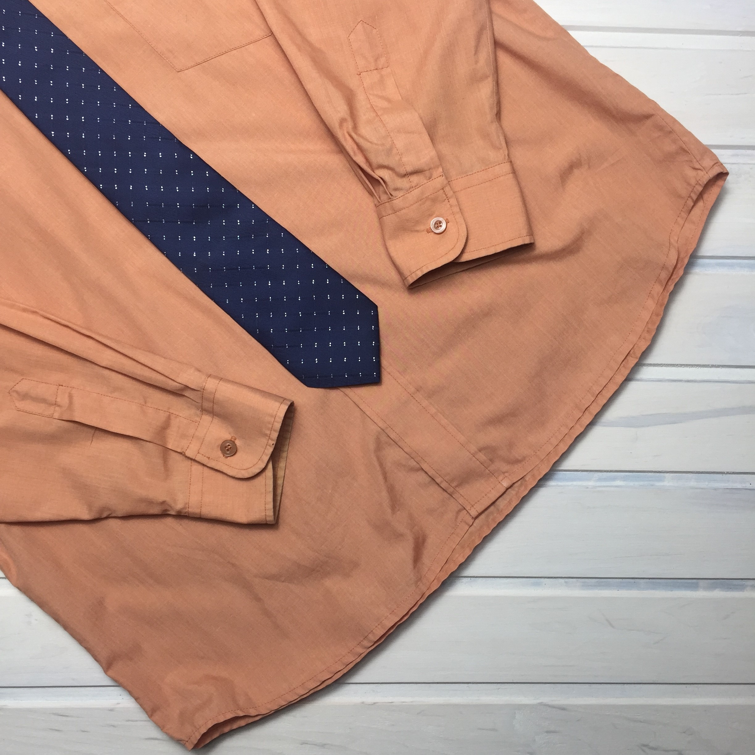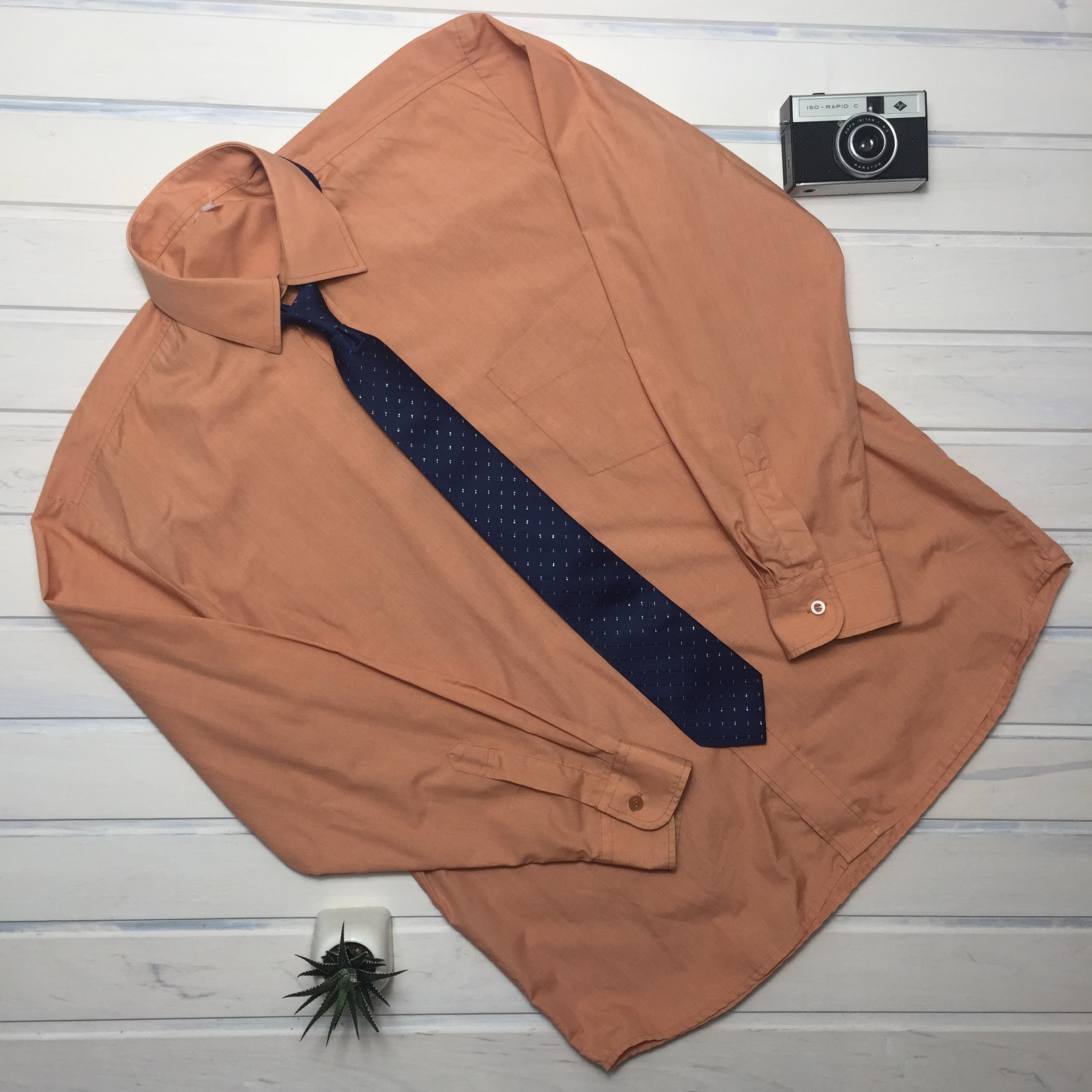Мужская рубашка оранжеваяразмер Lширина плеча 50полуохват груди 56длина рукава 61длина изделия по спине 80Ширина изделия по низу 56цена 2.90арт. 60