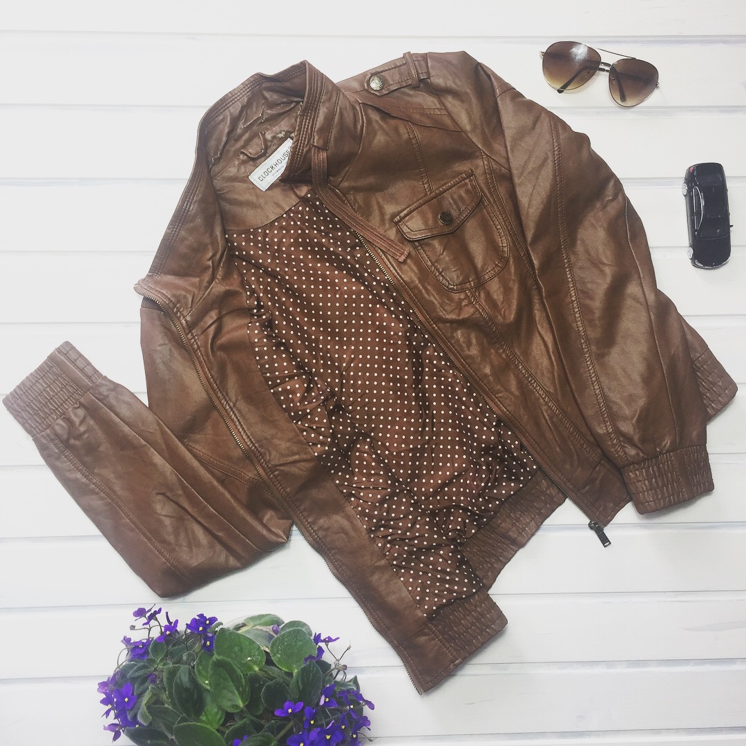 Женская куртка "Clockhouse" (незначиетльные потертости на фото)размер XLширина плеча 44полуохват груди 50длина рукава 62длина изделия по спине 61Ширина изделия по низу 46материал полиуретан, викозацена 14.90