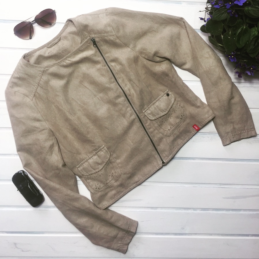 Женская юежевая курточка "Espirit"Размер Mширина плеча 39полуохват груди 49длина рукава 60длина изделия по спине 71ширина изделия по низу 58материал полиэстерцена 27.90арт. 10